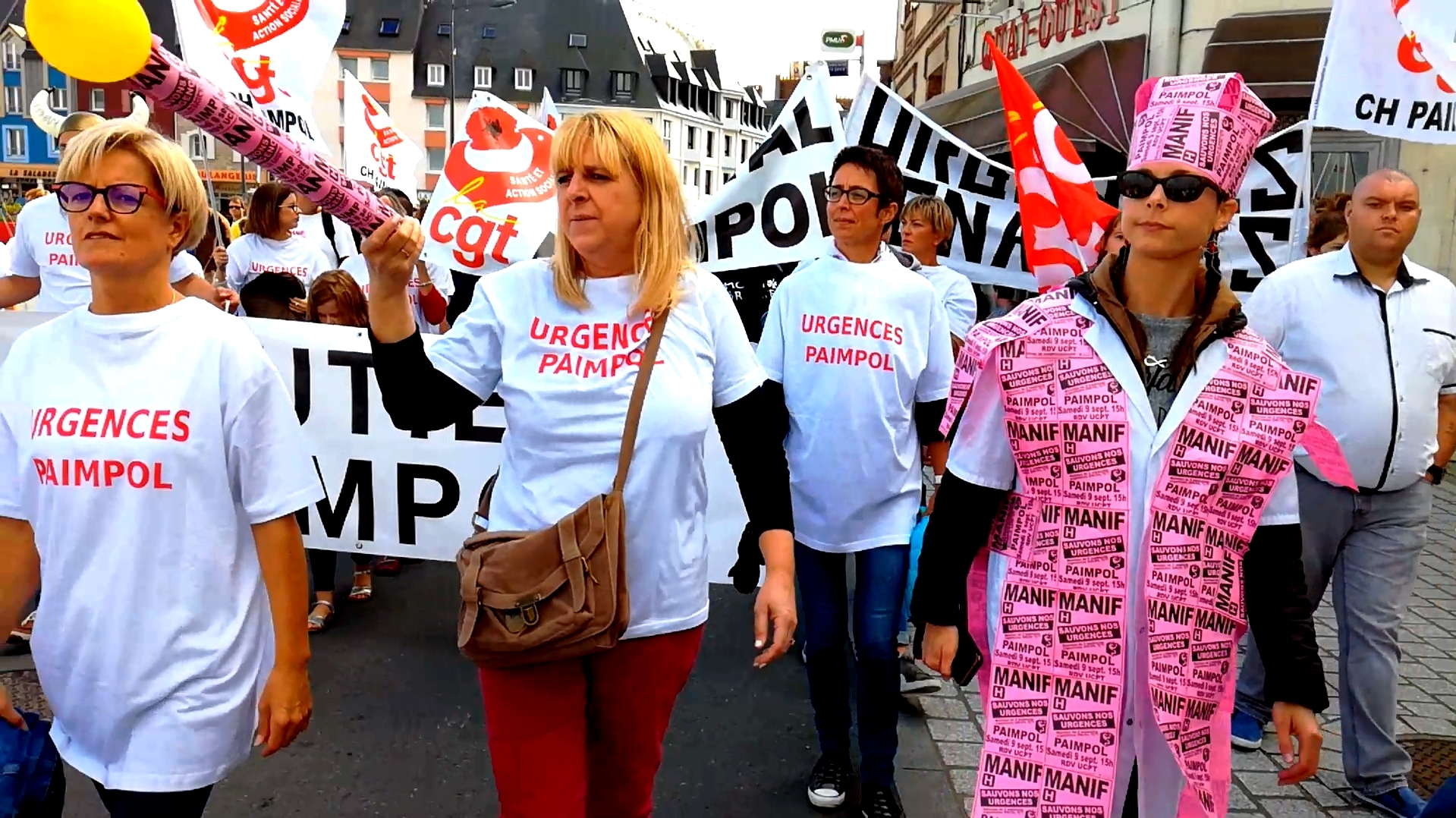 Paimpol n'avait pas connu telle démonstration citoyenne depuis longtemps. Peut-être doit-on remonter en février 2003, quand 10.000 personnes avaient manifesté pour défendre la maternité. En vain. Samedi 9 septembre, c'est encore le comité de soutien à l'hôpital de Paimpol (22), mené par Yves Ballini du PCF et Philippe Couleau de l'UDB, qui a fait descendre entre 3.000 et 5.000 Bretons dans les rues de la cité des Islandais, dans les Côtes-d'Armor. Cette fois, ce sont les urgences qui inquiètent. En mai, les personnels ont prévenu le comité que l'Agence régionale de santé (ARS) comptait supprimer un poste de médecin de nuit. Plusieurs rassemblements et quelques milliers de signatures plus tard, l'Etat est revenu sur sa décision, inspiré par une lettre des médecins. La partie n'est toutefois pas gagné car rien n'est signé et un poste de médecin urgentiste est désormais menacé en journée. L'ARS s'appuie sur une pénurie de médecins en Bretagne. Malmenée par la désertification médicale qui touche aussi la côte nord de la Bretagne, la population craint au final la fermeture des urgences, comme l'a déjà connu Tréguier. Environ 42.000 habitants permanents se situent dans la zone de rayonnement du centre hospitalier paimpolais, à 45 minutes minimum du premier hôpital (Saint-Brieuc, Lannion ou Guingamp). Des délégations d'autres hôpitaux de proximité avaient fait le déplacement, dont la coordination nationale elle-même. Celle-ci dénonce plus largement la loi du marché qui pèse sur les services publics, contraints à des coupes dans les effectifs et les moyens, jusqu'à des fermetures d'hôpitaux. La santé des patients est parfois atteinte et de nombreux agents font des dépressions. Reportage : Avec Yves Ballini, président du comité de soutien à l'hôpital de Paimpol, Ghislaine Fichou, infirmière aux urgences et Céline Le Doré, aide soignante et représentante CGT.