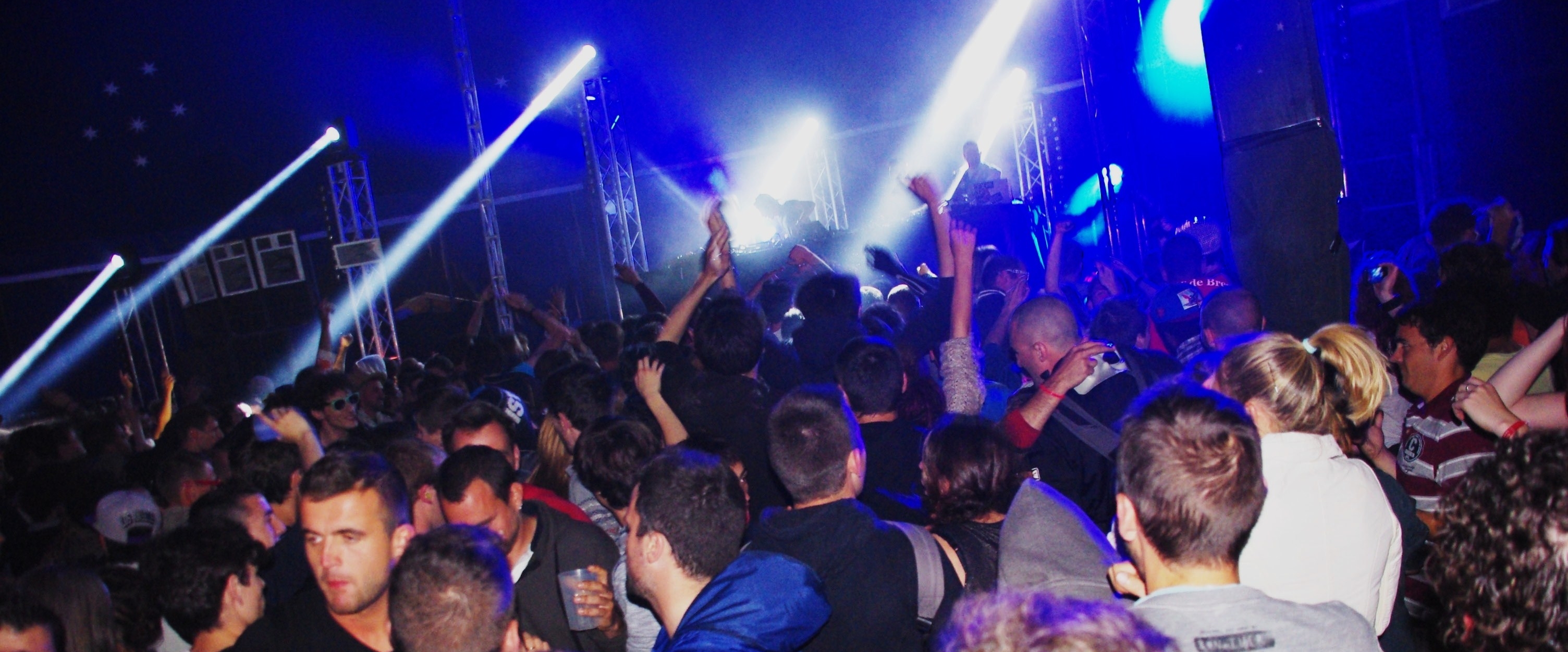 Mon Astropolis a commencé dans la navette pour le Manoir de Keroual. Le bus est bondé. Un grand noir avec un chapeau rose s'est assis sur mes genoux. La clope au bec, il provoque une copine à propos de la "MD". Il est 23 h passé, j'ai d'ores et déjà raté Dope D.O.D, mais la nuit ne fait que commencer.