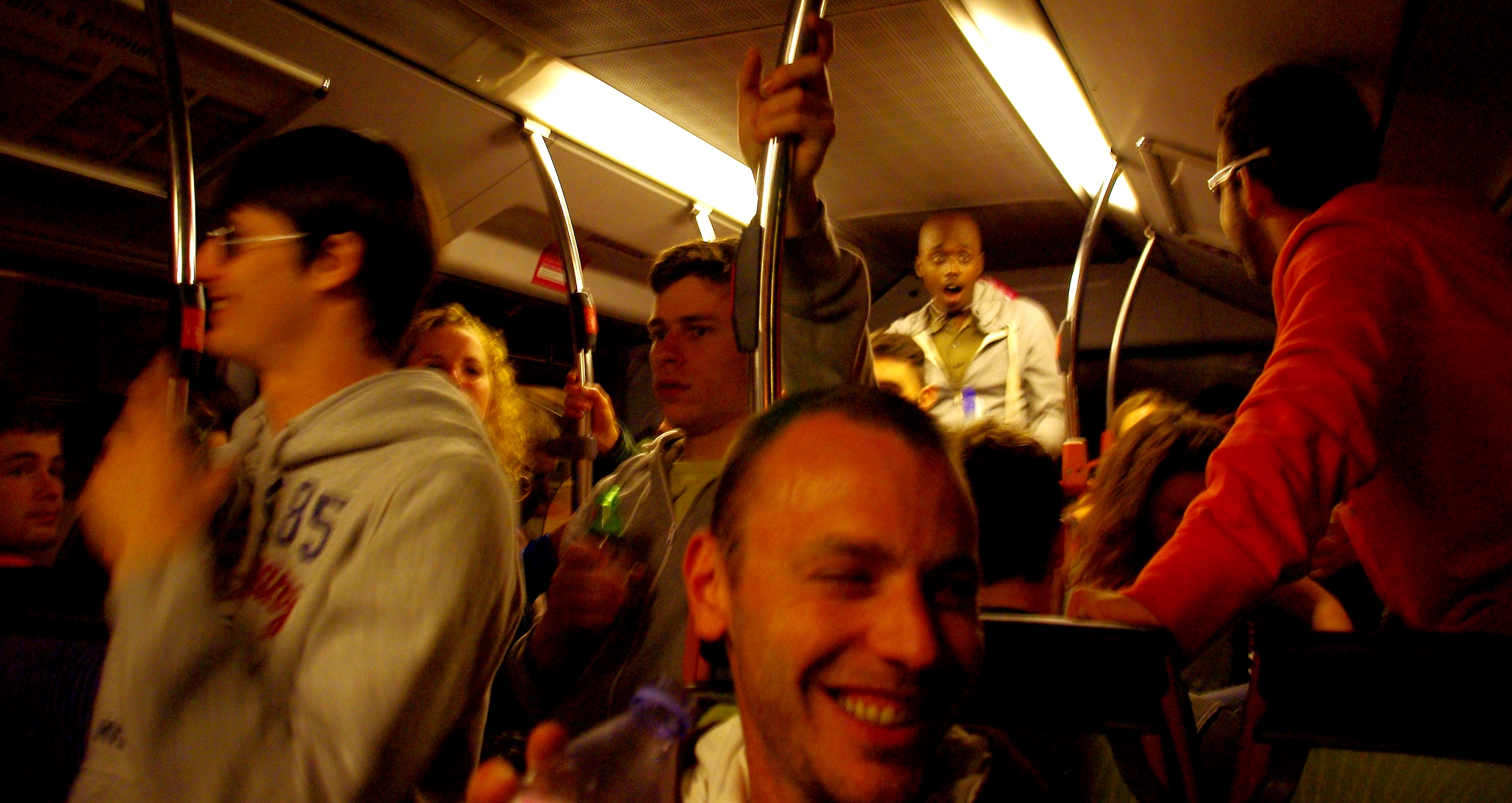 Dans le bus, donc, je saisis que la MD, dont mon voisin se vante de consommer en "ayant atteint un stade où il ne sent plus les effets", ne fait pas référence à un antique enregistreur audio, mais bien au psychotrope connu sous le nom d'ecstasy. Autour, les passagers sont parfois très jeunes et j'imagine que certains viennent fêter leur bac. Des jeunes filles retouchent leur maquillage, tandis que bouteilles et canettes passent de mains en mains. Peu avant d'arriver, la Marseillaise est reprise en cœur entre deux chansons paillardes. Qui a dit qu'on avait oublié les paroles ?